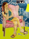 I’ve always had a weak spot for pictures of people reading. Dana has made scores of quick, colorful drawings of people reading on the San Francisco Subway, Bart. I can identify with these people and with Dana as she sees them and draws out the best in each person. Reading in a public place is a kind of unique activity — we’re simultaneously doing something very private and yet totally visible — often, in a crowd. When we read on the subway, our mind is lost somewhere in the page before us, yet we’re still showing something. Maybe we’re trying to conceal it — maybe we think no one is looking at us. Looking at the drawings, I am pulled into wondering about each person’s mindset at that moment and yet aware of the eternity of how they are presenting themselves, and how that page is such a permanent refuge. Though each drawing is quick, each face is much more than a surface.